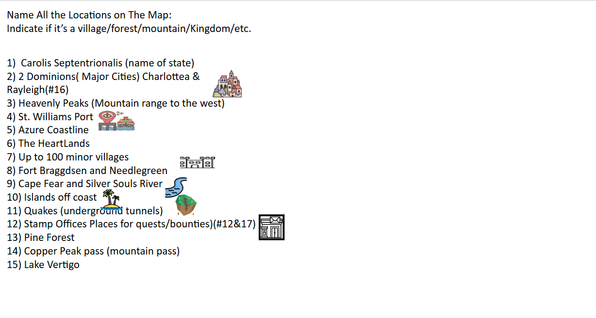 - Along with the world map, I composed a legend with numerical markings to point out certain point’s of interest on the map, including landmarks and major cities.