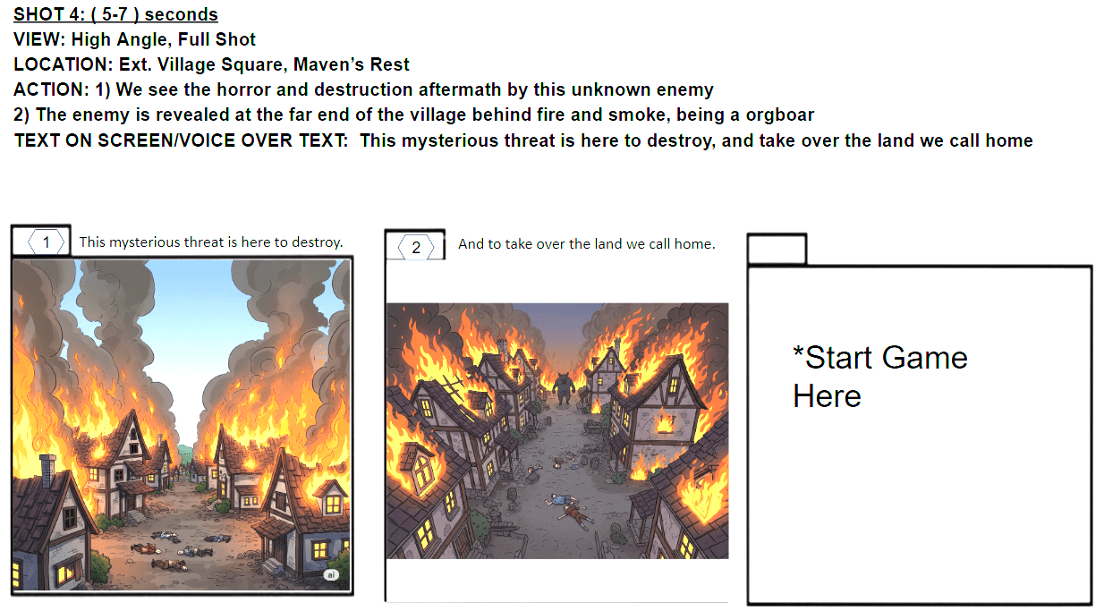 - Designed shots with worldbuilding in mind, creating an order that can be used as both a trailer and intro before the tutorial.