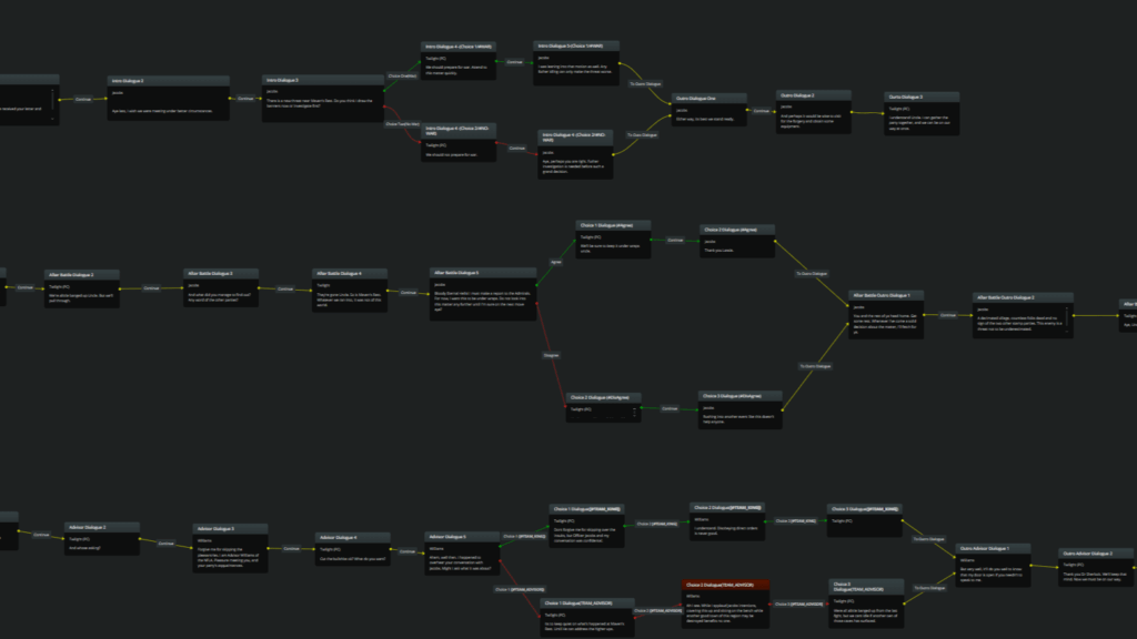 - Quest branching dialogue writing