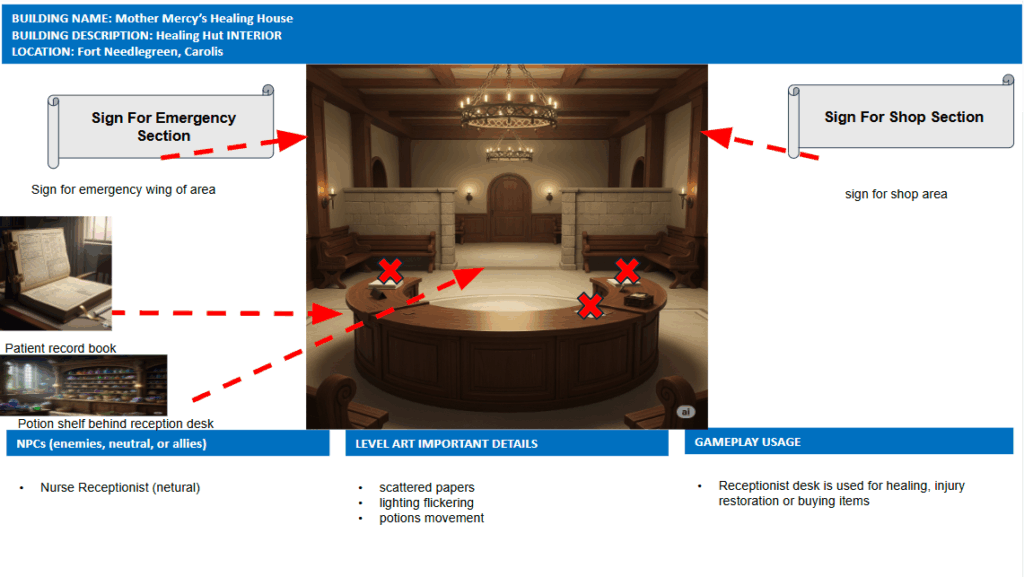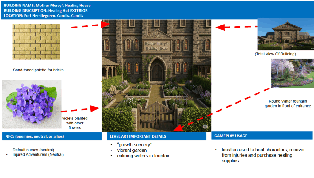 - Creating a vivid game map using inspiration from real locations, I envisioned a unique region with a detailed location featuring interior and exterior designs.